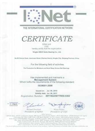 2014年6月27日,百沃公司通過了ISO9001:2008質量體系認證。